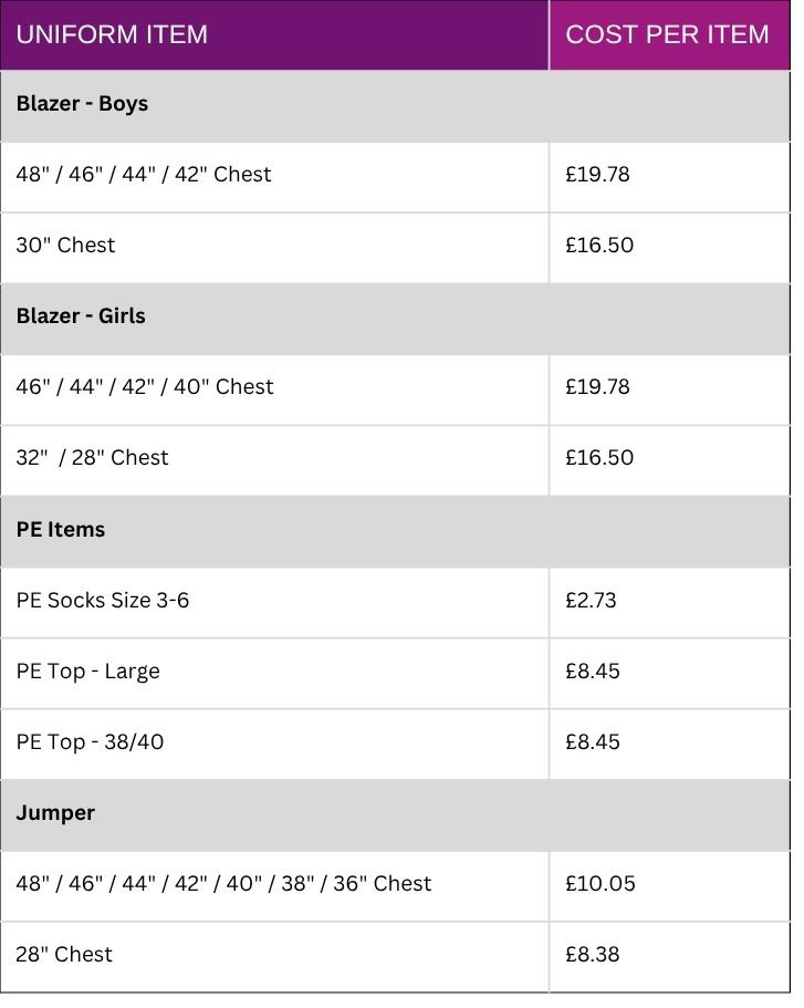 The Department for Education have asked all schools to ensure that uniform items are accessible, of good quality and affordable to parents and carers. The academy’s official uniform supplier, Price & Buckland, have confirmed they will ensure that all of their products meet the required standard.